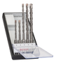 Bosch 2 607 019 927. Vorgesehene Verwendung: Rotationshammer, Geeignet für Materialien: Mauerziegel, Beton, Sandstein, Stein, Schaftform: SDS Plus. Verpackungstiefe: 87,5 mm, Verpackungsbreite: 197 mm, Verpackungshöhe: 23 mm. Verpackungsart: Box. Anzahl der Bohrer-Bits: 5 Stück(e), Schraubendreher-Bits Größe: 5.0 / 6.0 / 6.0 / 8.0 / 10.0mm